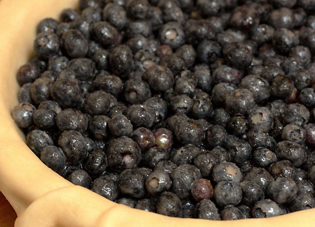 Раскатайте тесто 33 см в диаметре и аккуратно переложите на форму 22 см. В большой миске смешайте чернику, сахар, крахмал, соки переложите смесь на основу.